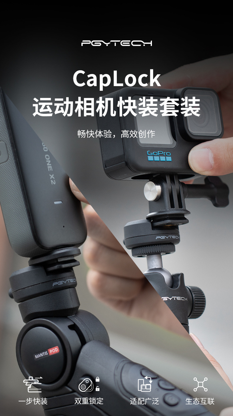 []PGYTECH CapLock运动相机快装套装/球头快装套装 转接配件