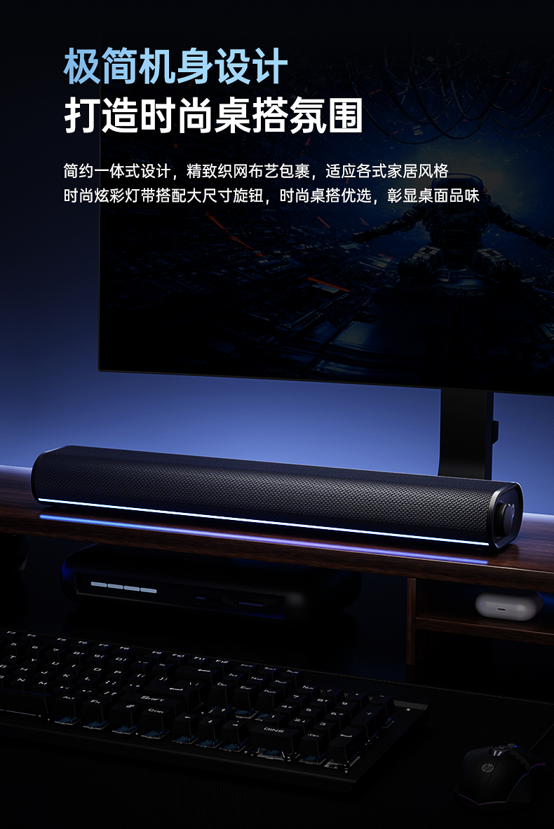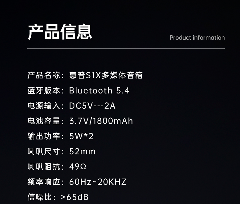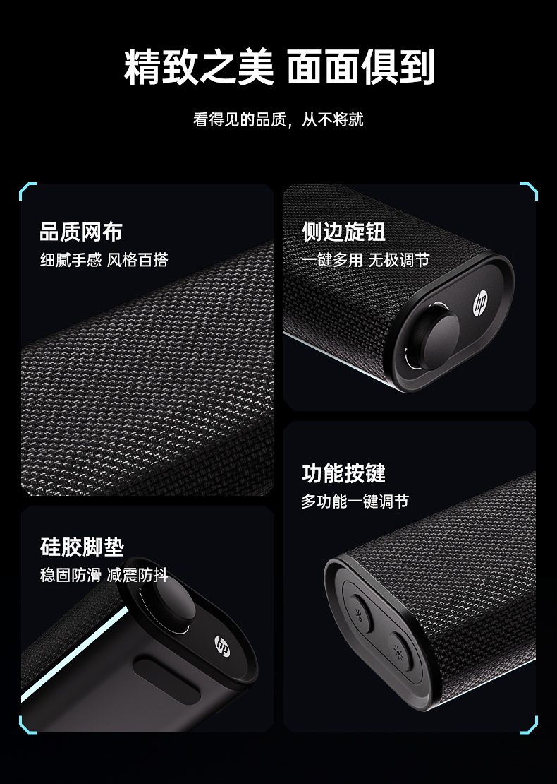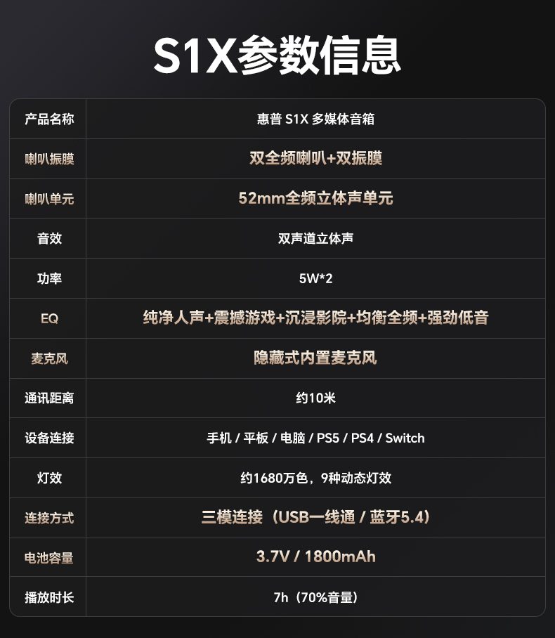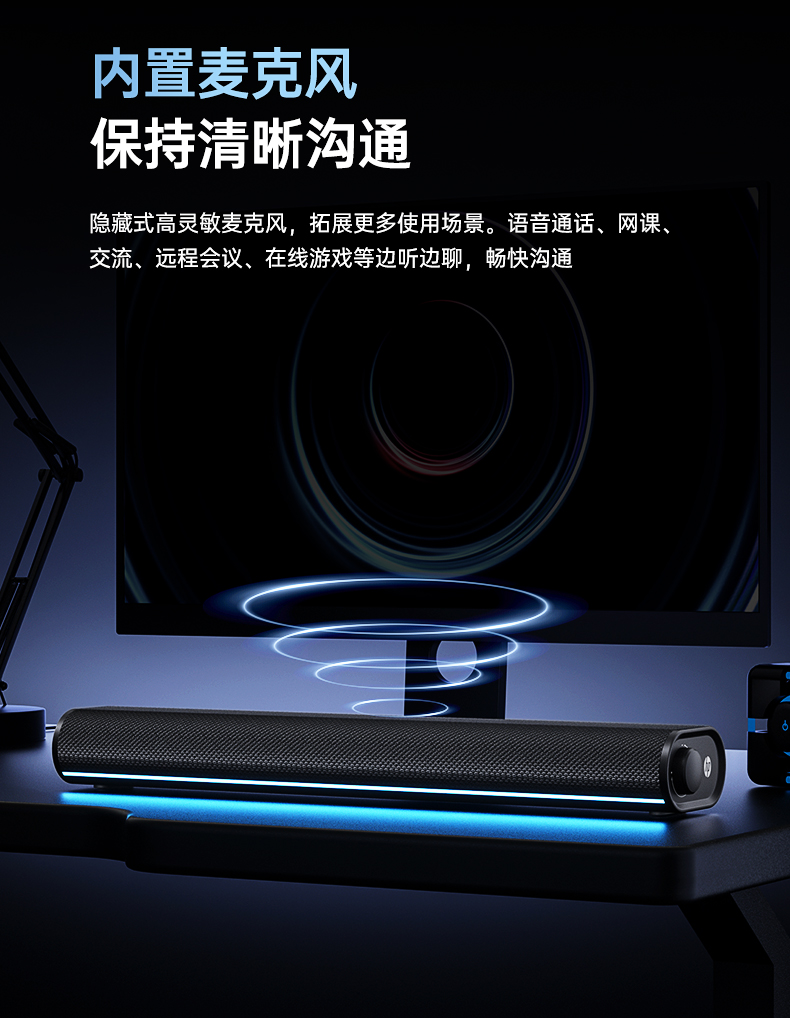 惠普S1X电脑音箱桌面降噪麦克风蓝牙音响台式游戏低音炮家用三模