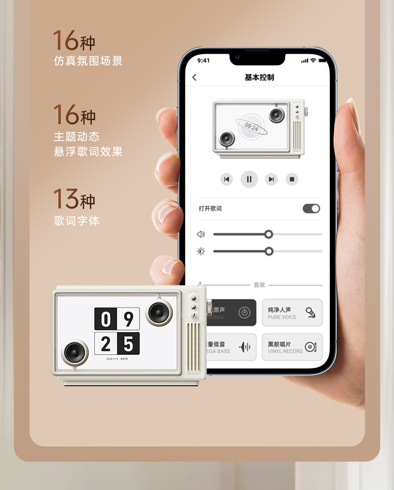 猫王MW_T5悬浮歌词音响无线蓝牙桌面透明可视化网红K歌音箱收音机