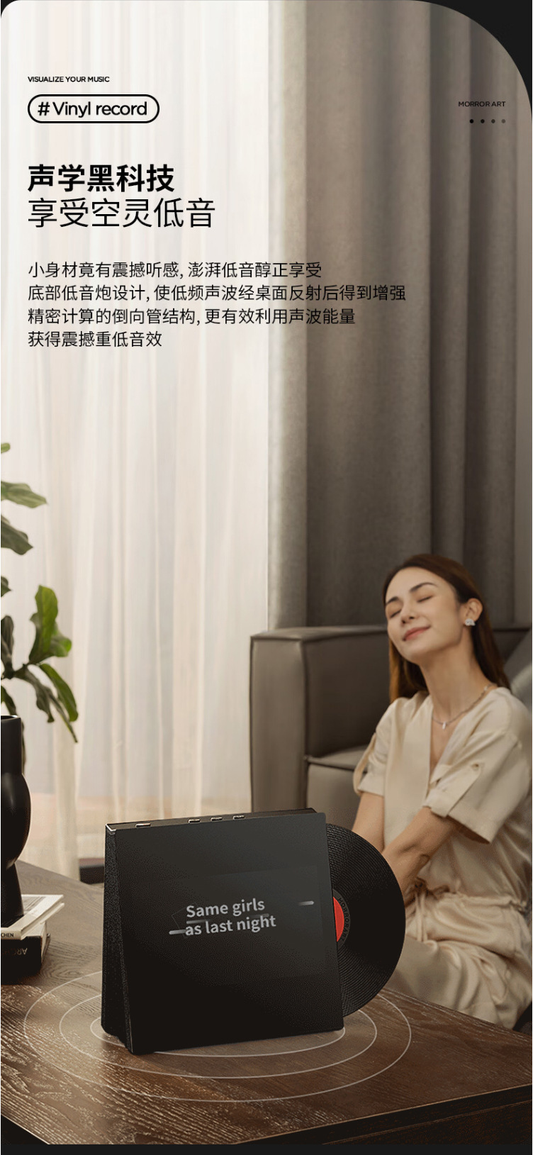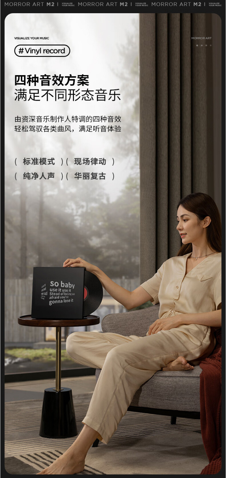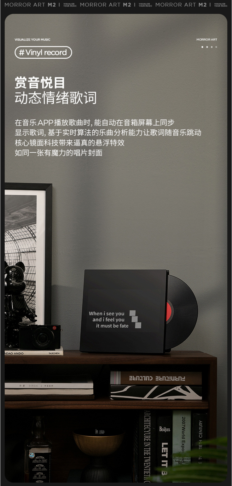 MORRORART M2悬浮歌词字幕蓝牙音响家用桌面音箱低音炮唱片音箱