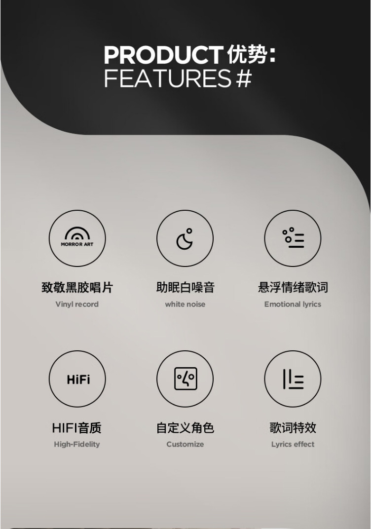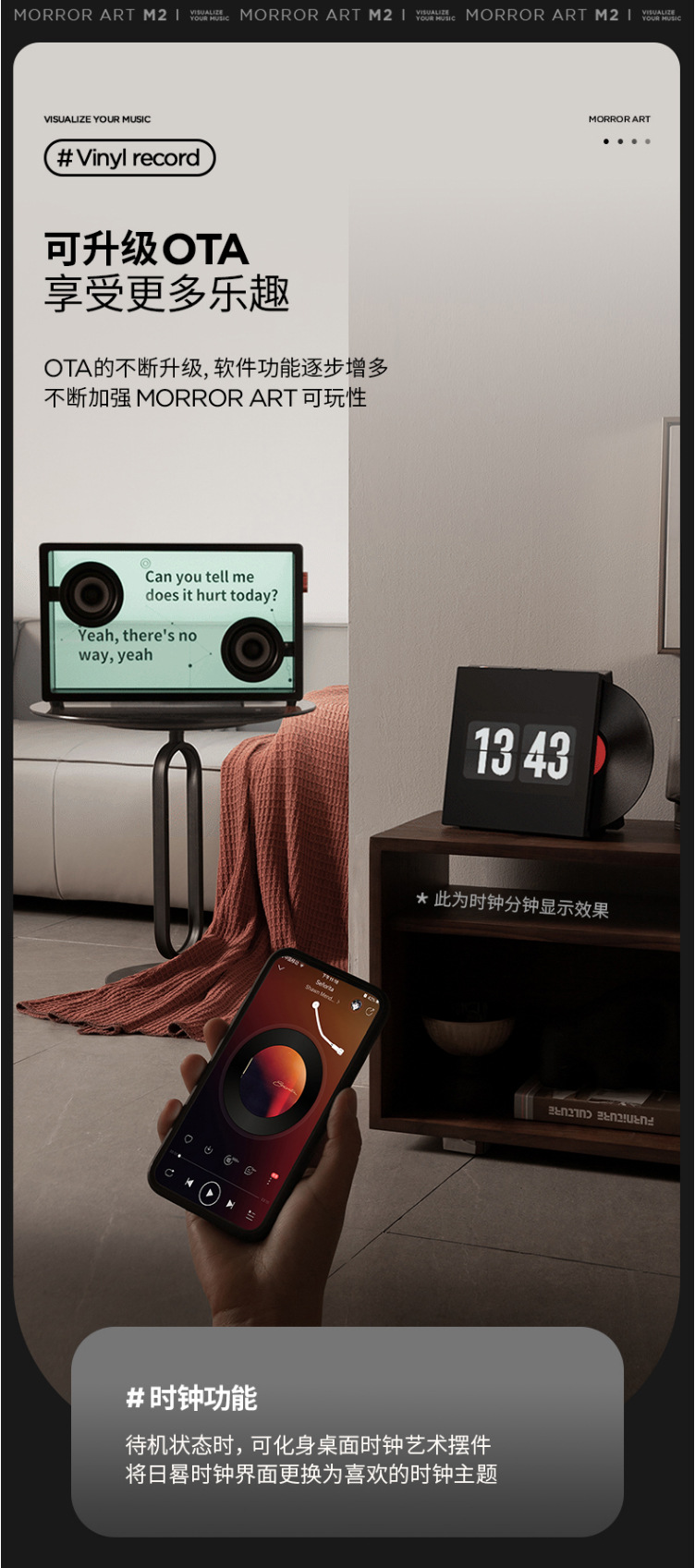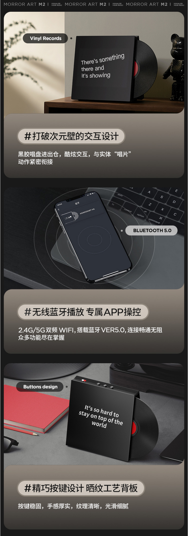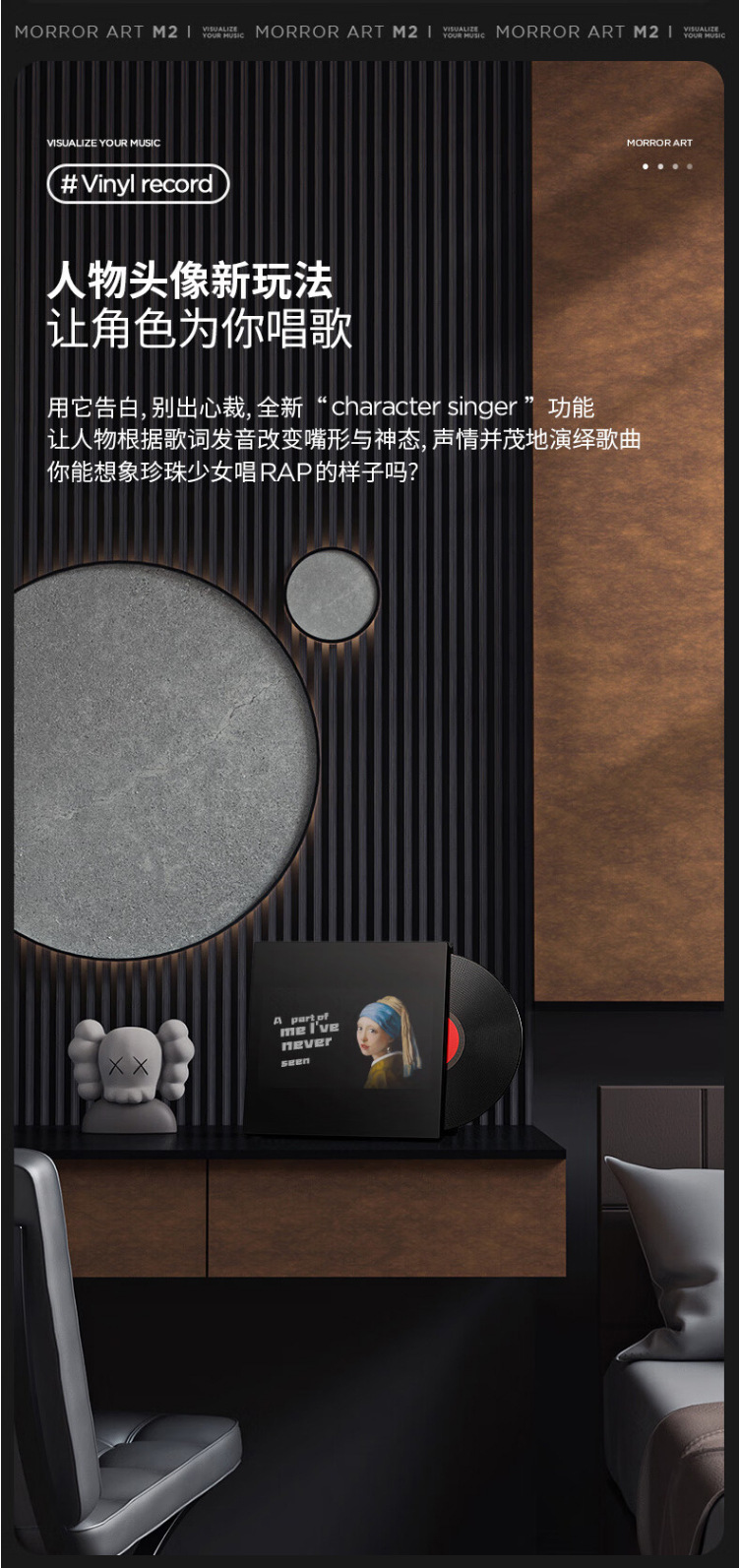 MORRORART M2悬浮歌词字幕蓝牙音响家用桌面音箱低音炮唱片音箱