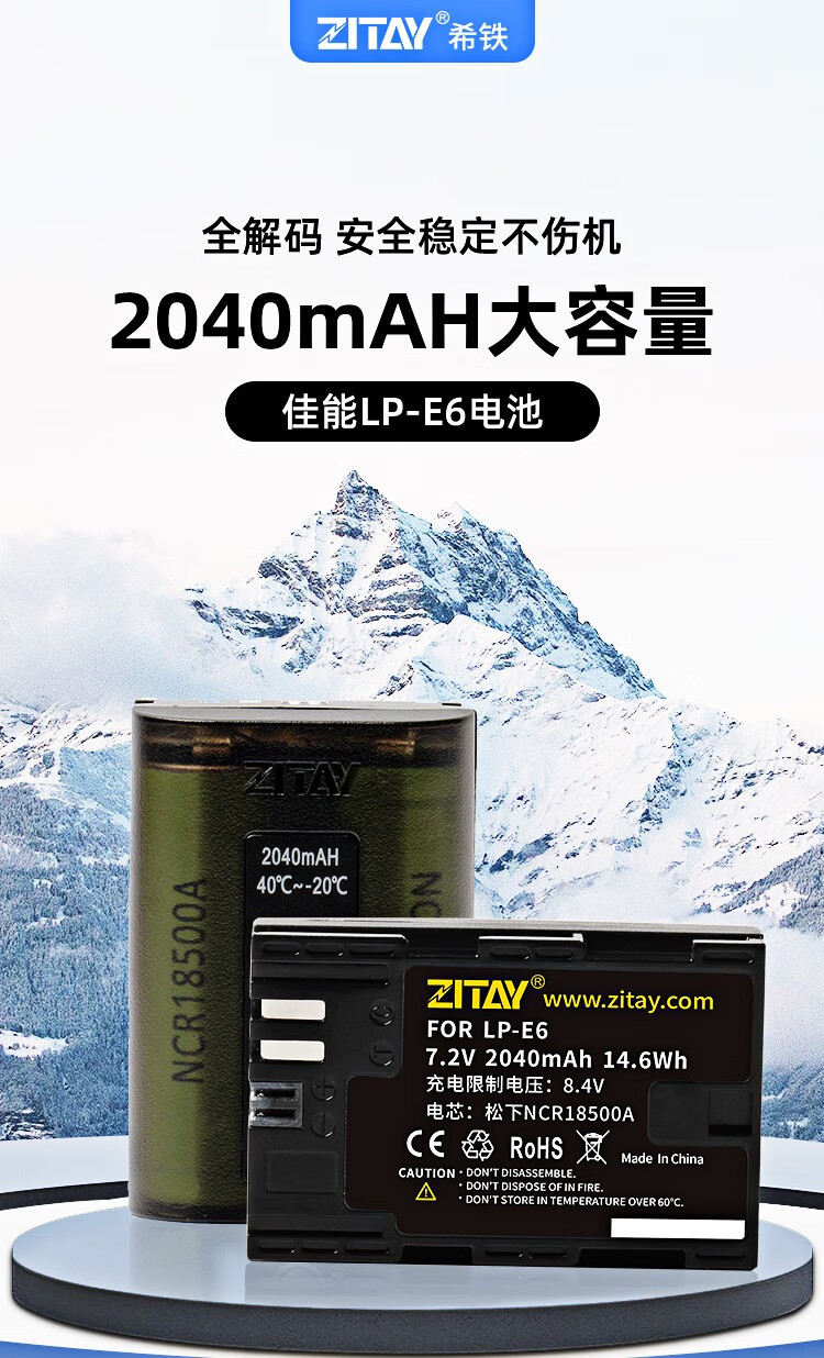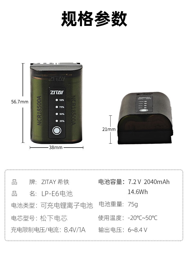 希铁(ZITAY)适用Canon佳能LP-E6/E6NH/R7/R62/5D4/80D/5D2/5D
