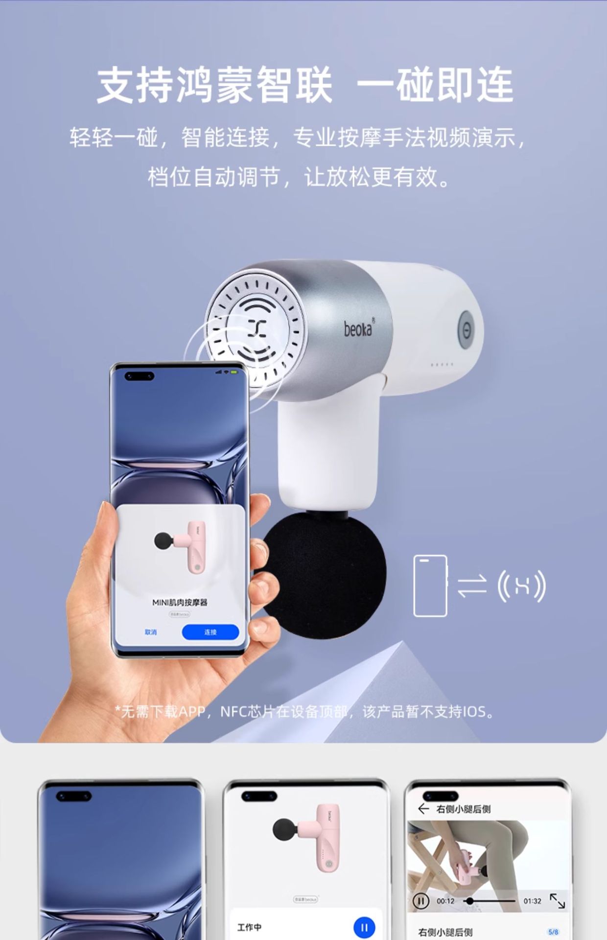 9倍益康HI mini肌肉放松按摩器智能电动颈膜枪男女支持鸿蒙智联