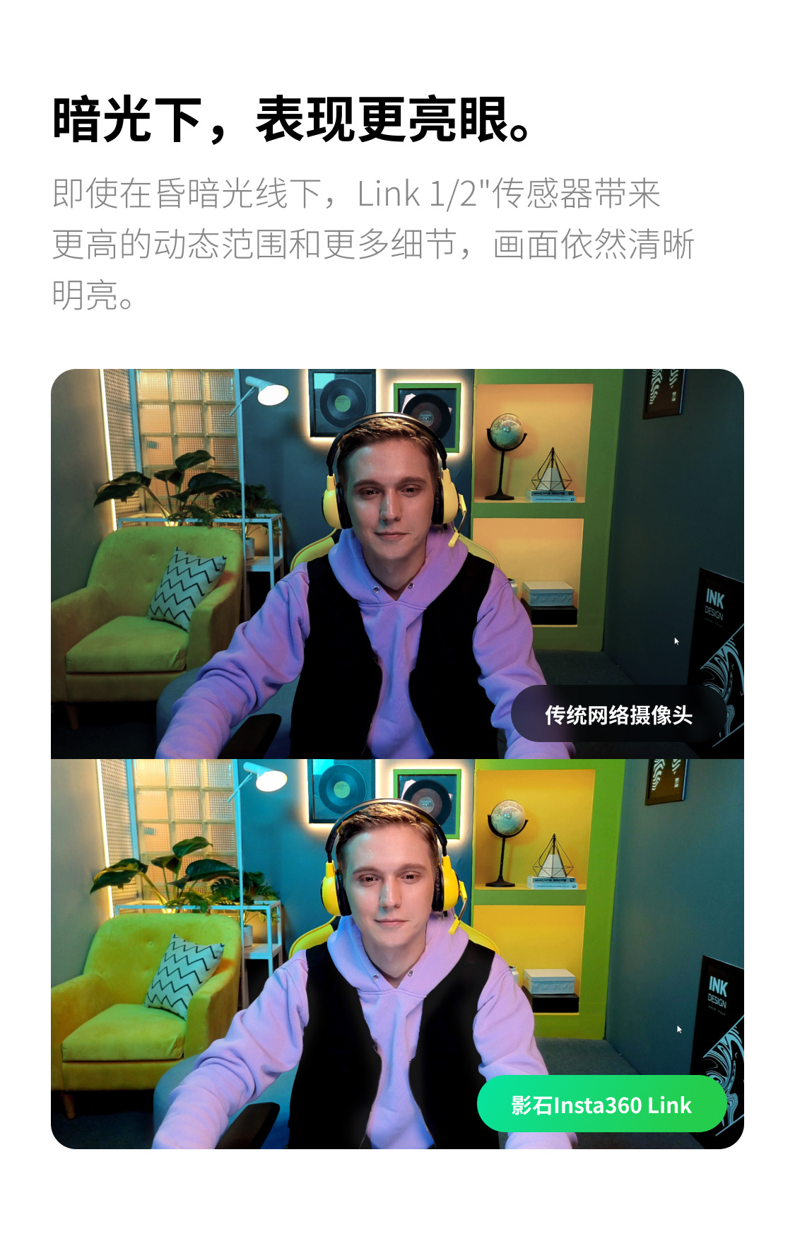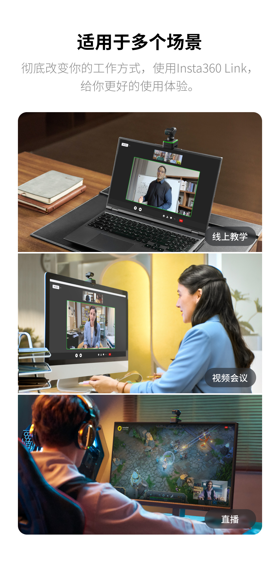 鸿图影石Insta360 Link 4K云台智能摄像头高清直播电脑会议
