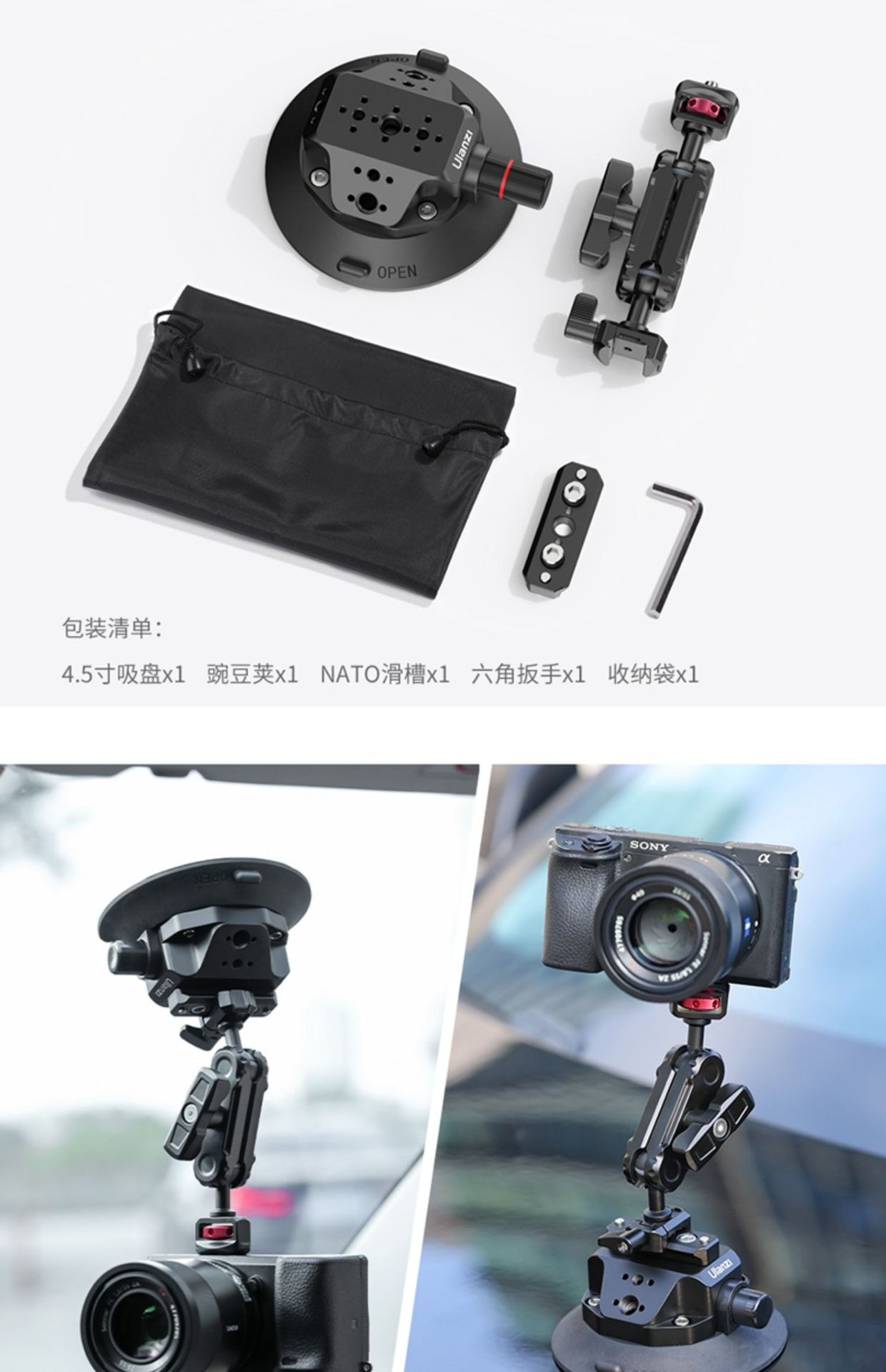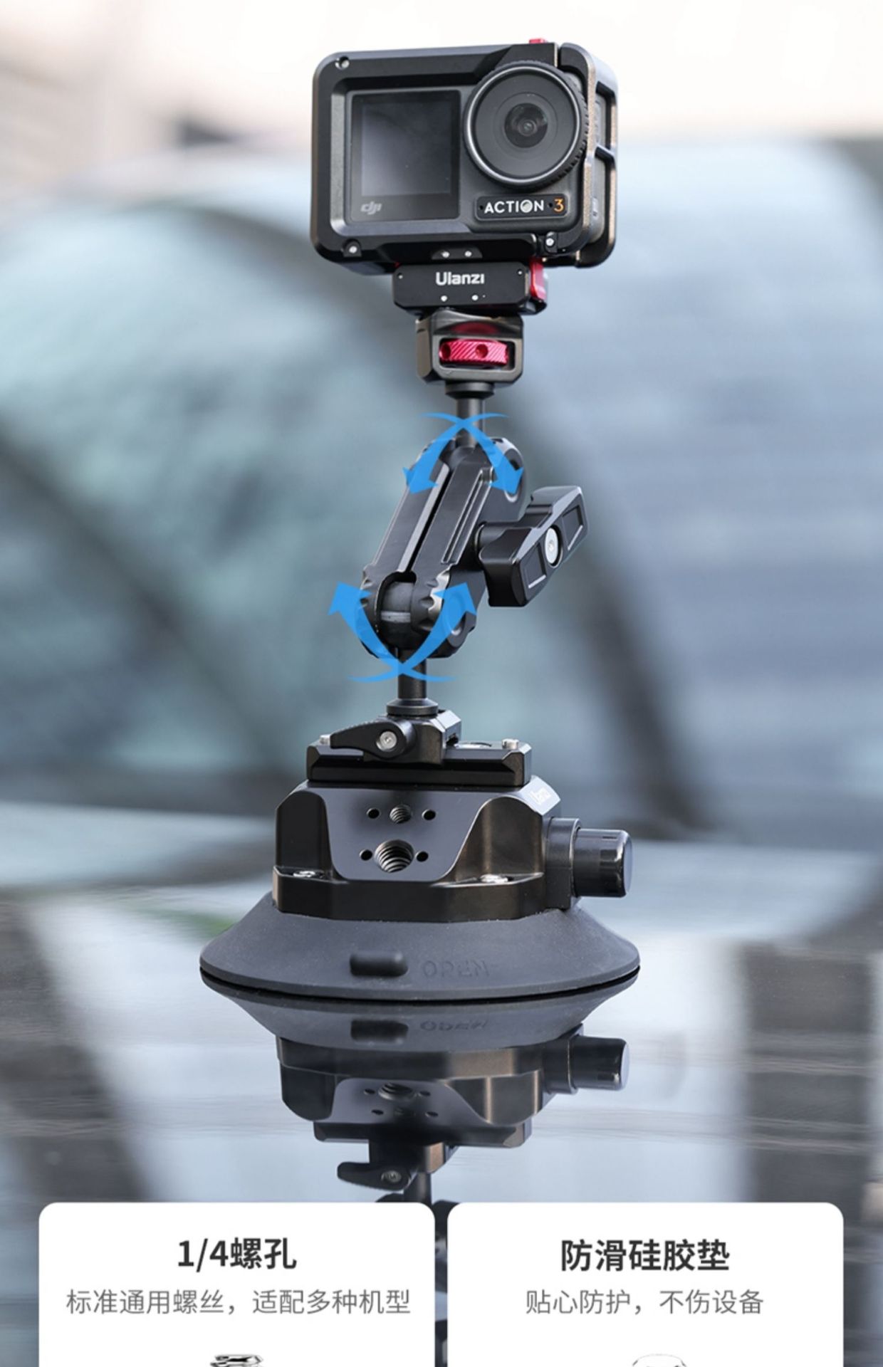 9Ulanzi优篮子gopro12/11/10车载吸盘支架action5/4/3配件