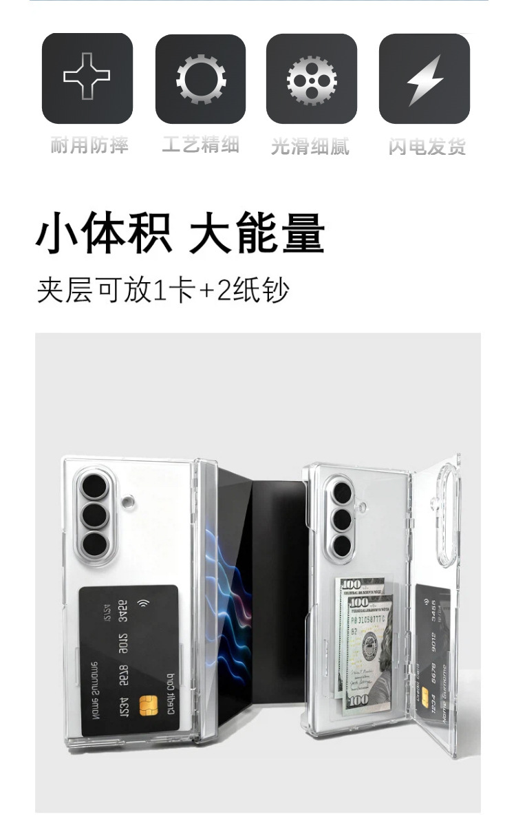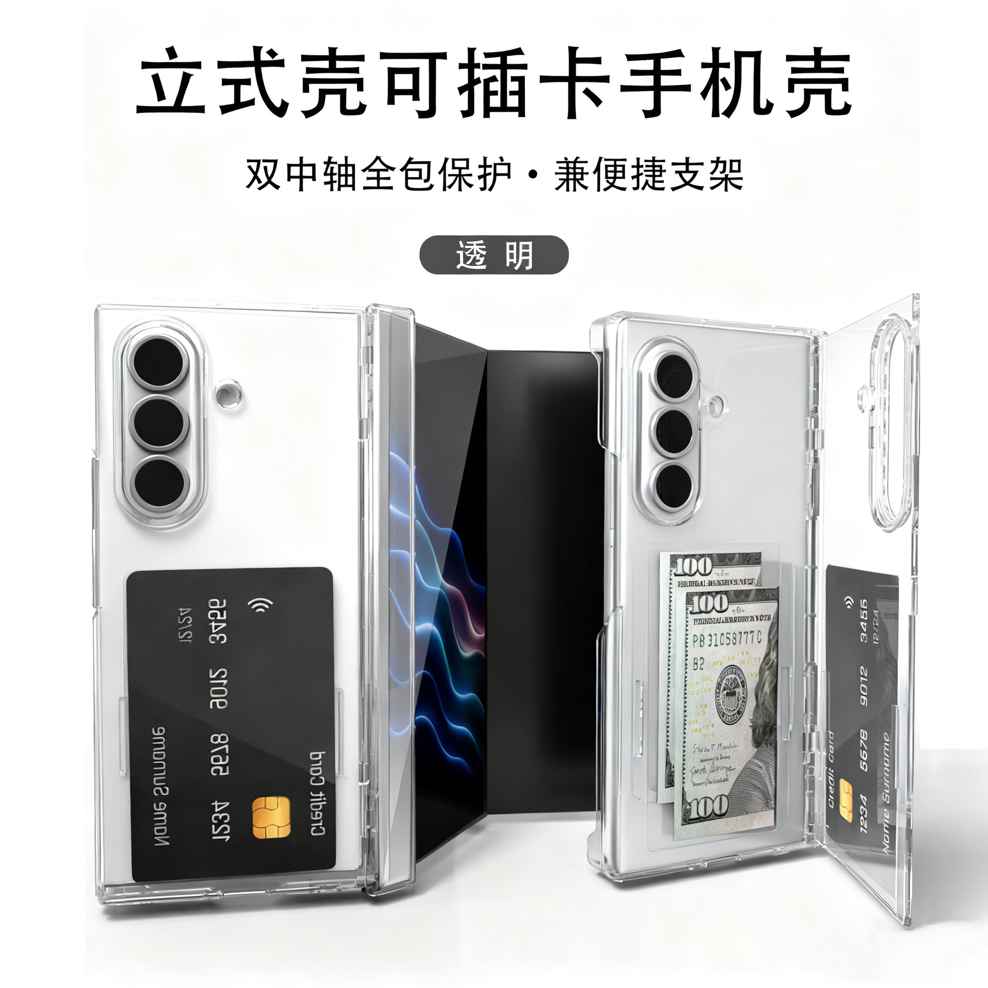 适用三星ZTriFold手机壳ZTRIFOLD三折叠腕带插卡支架透明保护壳