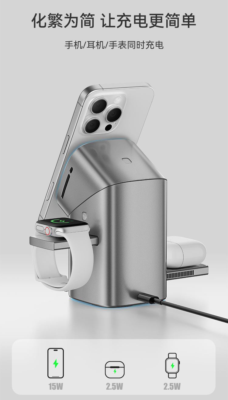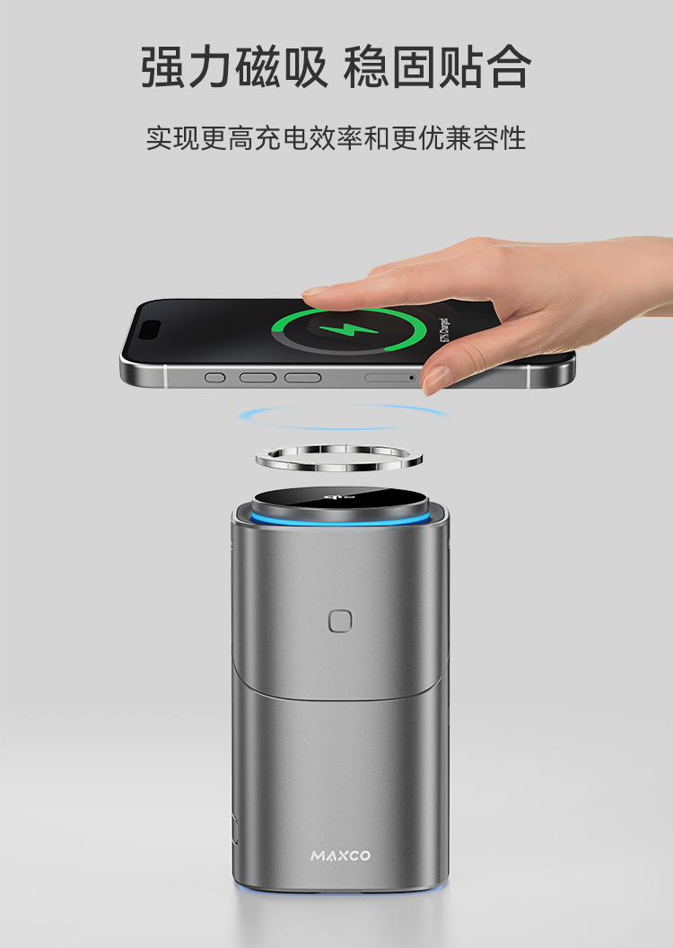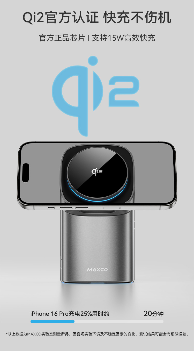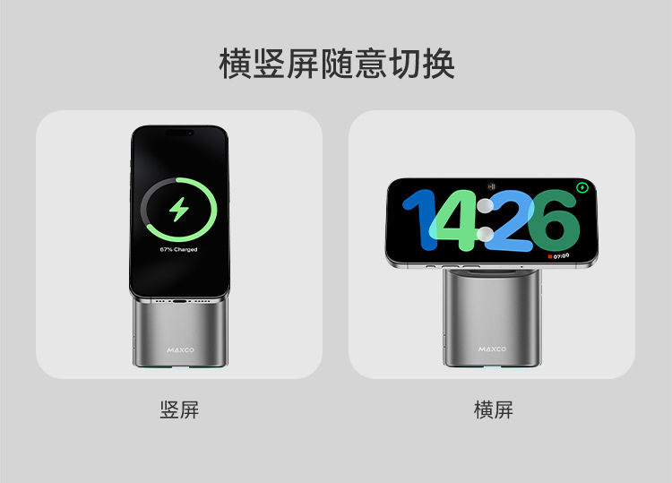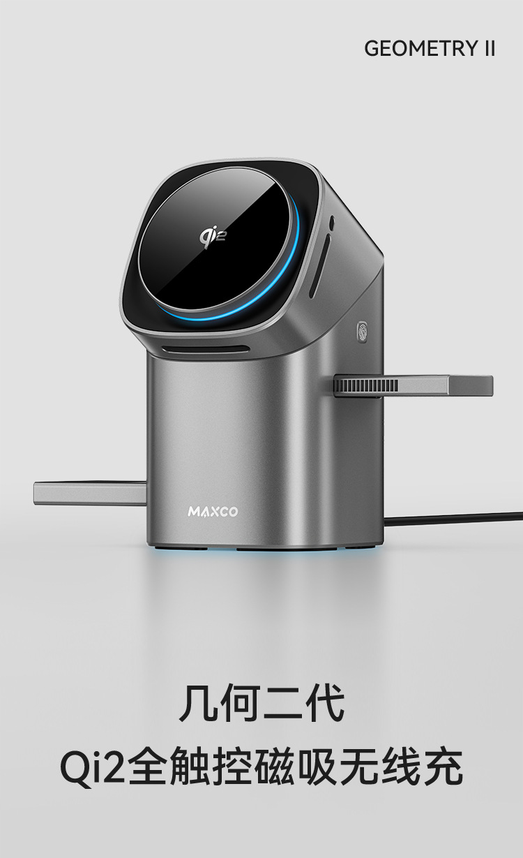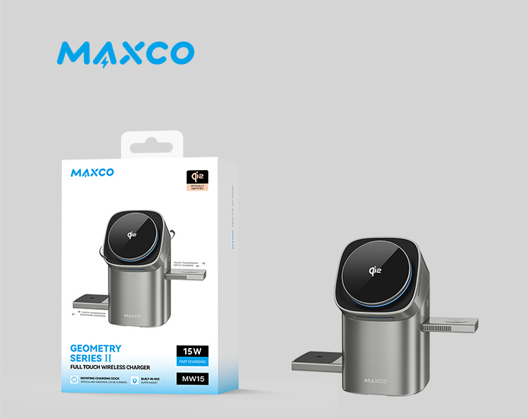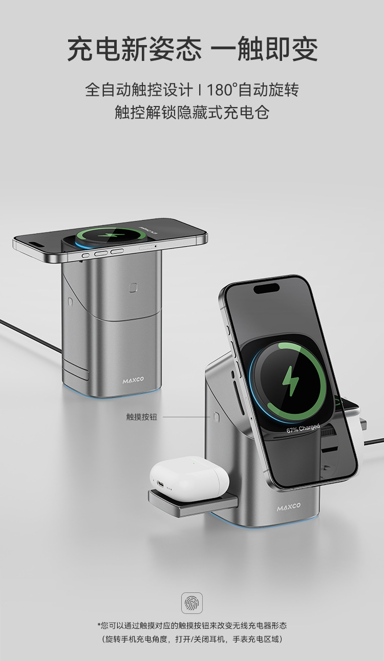 美能格MAXCO三合一MW15无线充电器Qi2协议全触控旋转磁吸快充升级